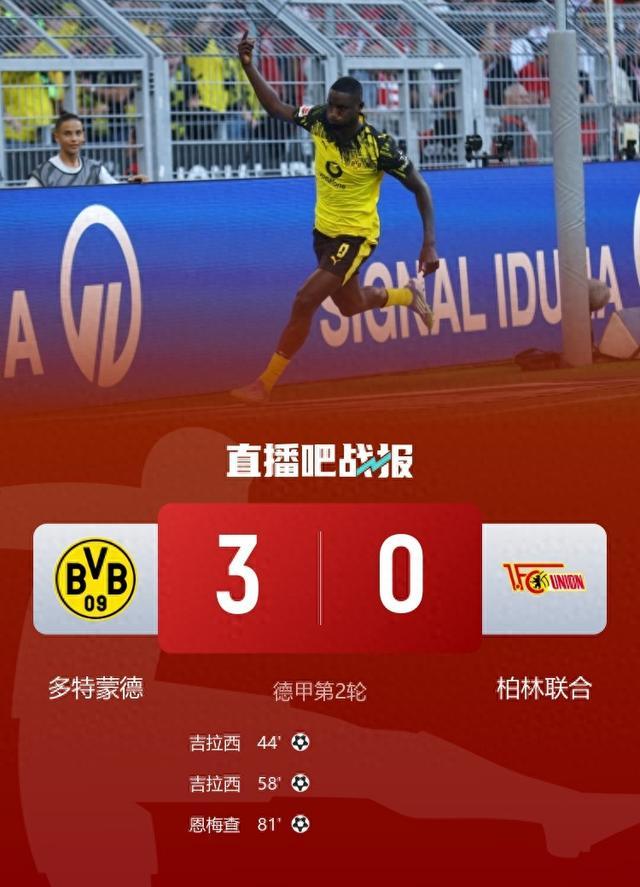 开云官方-德甲-多特蒙德3-0柏林联合取赛季首胜 吉拉西梅开二度恩梅查建功